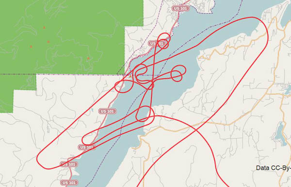 As you can see, I spent a lot of time flying up and down the Hood Canal fjord. The traffic was light and the scenery was beautiful, but the flying was demanding and tedious with lots and lots of repetitive adjustments and tests.