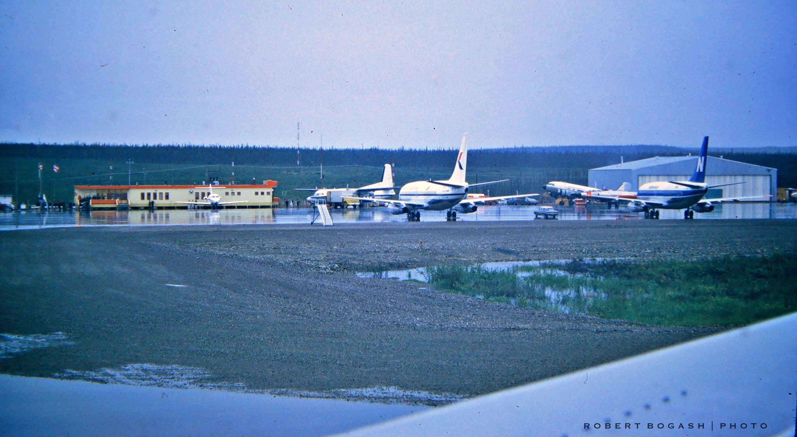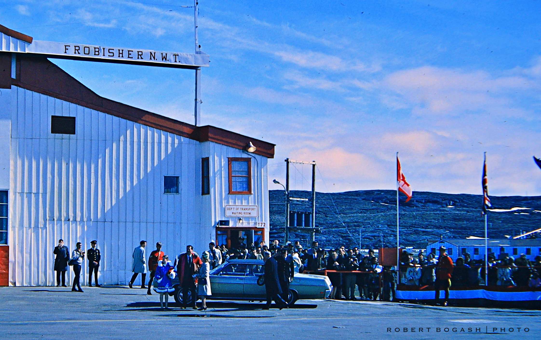 Rupert's Land.![]() The Plan was for the Queen and the Royal Family to fly from London to Frobisher Bay on Baffin Island (currently Iquluit, capital of Nunavut) by Air Canada DC-8. Thereafter, the Family would spend the better part of a week visiting the small settlements and towns in the NWT. They would be carried aboard two gravel-runway equipped 737-200s, and accompanied by a third similar airplane carrying Press and other dignitaries. Arriving Frobisher Bay (CYFB) from Montreal I was the Boeing Field Rep assigned to Nordair in Montreal and was asked to accompany the Tour. My stated function was to provide engineering and logistical support should the airplanes experience technical difficulties. But my primary function was to be as Aircraft Security Officer performing extra-detailed walk-around inspections with an RCMP Officer at every stop to ensure all was right with the airplanes and especially that no non-normal equipment was present in any of the airplanes - especially in normally inaccessible areas - such as wheel wells and Electronic (E/E) compartments. The Sovereign (Queen) never travels together with the heir apparent (Prince Charles) so the Family was divided up with the Queen and Princess Anne flying in one airplane, and Prince Phillip and Prince Charles in another. I rode the jump seat. Nordair supplied two 737s - one for the Press corps, and Pacific Western supplied the third airplane. We flew into stations served by both airlines. Many months of Planning and Preparation went into making the flights, which went off without a hitch. I have flown many VIP flights with heads of State and even the Pope, - these were transports between major cities where the Primary occupant normally deplaned to a red-carpet welcome, and was whisked away in an elaborate entourage (I did have a long chat once, however, with Pope Paul VI, when he visited the cockpit of his Boeing 707.) But this Royal Family week was unique in that the places visited were truly tiny, and lodging and facilities and transportation was primitive to almost non-existent. This provided the extraordinary ability to rub shoulders with the Primary Guest(s) and even share their living and dining quarters - often the only place - an opportunity that gave the participants a once-in-a-lifetime experience. Certainly one I will never forget. The following is a photo essay of some of that week.