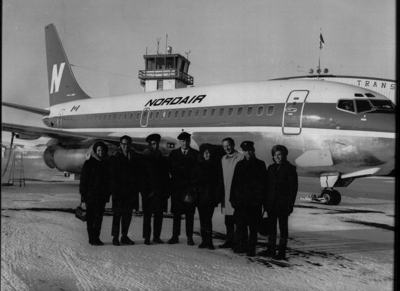 March 1969 at Frobisher Bay - 1st 737 Jet flight heading to Resolute Bay - Paddy in the middle; me 2nd from left and in the Left Seat of a DC-8