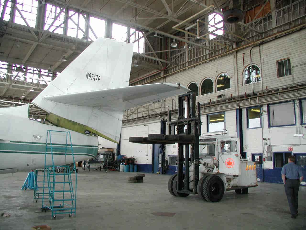 Disassembly at B.C.I.T. The registration, N9747P, is not an