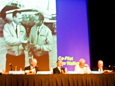 ![]() Saturday, April 14, 2007, we celebrated the 40th Anniversary of the 737's First Flight with a Theater presentation and a Tour of the airplane. Panelists were:Dick Taylor, Brien Wygle, Peter Morton, Bob Bogash, Tom Twiggs, and Rob Rivers (NASA Test Pilot). ![]() Also attending representing NASA Langley was Luci Crittenden - here with Brien Wygle (First Flight Pilot) and Tom Twiggs (Boeing Test Pilot who flew NASA 515 extensively.) ![]() ![]() ![]() After the Theater show, we moved to the Air Park and the airplane ![]() ![]() Reunions of a lot of old friends - Bob Bogash and Del Fadden ![]() ![]() ![]() ![]() KING-5 TV Host John Curley and his son ![]() ![]() Luci Crittenden and Bob Bogash ![]() ![]() The woman who makes all this possible - my wife Dot - who puts up with my long hours with my airplanes |