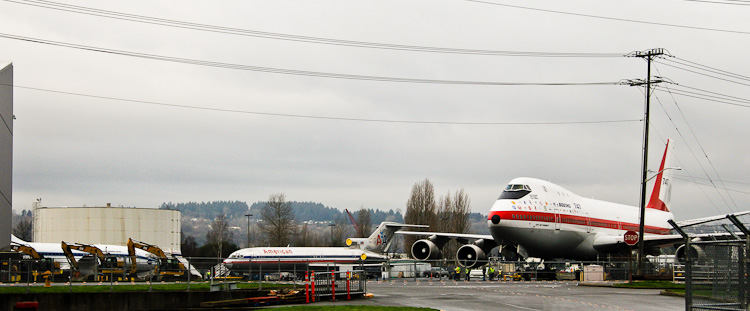 The 737 Prototype and 747 Prototype airplanes were moved out, providing