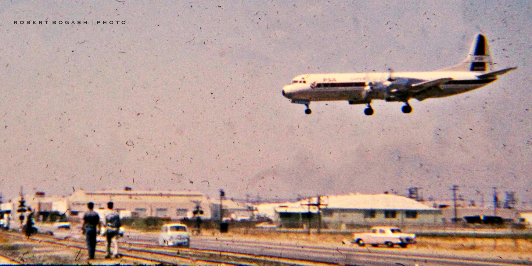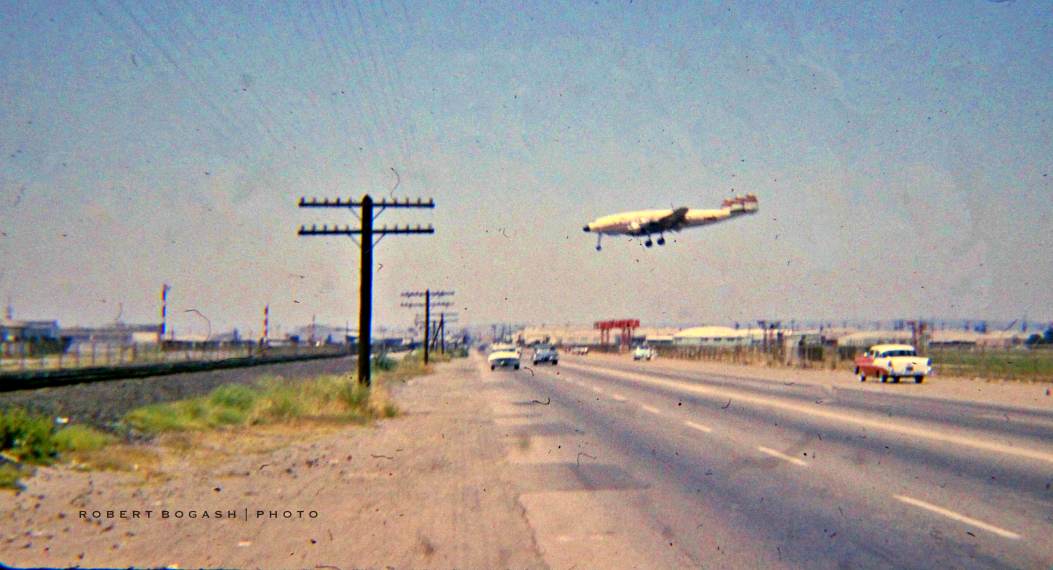 me. There was a spot along Sepulveda Blvd where the road ran under the runways and taxiways. It was good for some limited pix, but mostly, the gang headed for Aviation Blvd, off the ends of the runways. Sepulveda Aviation Blvd was my favorite spot on the east end of the Los Angeles International Airport runways, where I, and other airplane fans hung out on the Western Pacific railroad tracks, watching airplanes land. We called it LAX on the Tracks. Many decades later, while I was talking with my good friend Jon Proctor (now sadly deceased), it turns out we were there doing the same thing at the same time! Aviation Blvd was the place to be. Notice how wide open everything was in those "Good Old Days" Yep - in those Good Old Days, people were interested in just watching airplanes. Nowadays, they hire lawyers to sue airports to shut them down due to noise, pollution,you name it. Until they want to go on vacation, that is...... They don't call it Lax on the Tracks for nothing. Sometimes you better watch for trains. Check out those old cars. Bet that '56 Chev would be worth a few bucks these days! Watching for the "new" airliners - like this Western Electra A big step up from this DC-6B or this Connie I'm amazed to see how close to the wires some of those airplanes came - the runways were plenty long. And watching the recips "dive" for the runway! Occasionally, you get a "Good One"! Western Electra.... and PSA Electra's were "OK", but.... We craved "modern" airplanes, especially JETS!!! ![]() Now yer talking' !!! Even a JetStar Those were the days, my friend, we thought they'd never end.... BTW - These days, the tracks have been dropped into a cut and tunnel, and the street has walls, and no shoulders for today's Lax on the Tracks bunch of fans to stop and watch the action. Same story everywhere - and no more Observation Decks either. ![]() Aviation Blvd and "the Tracks" today. |