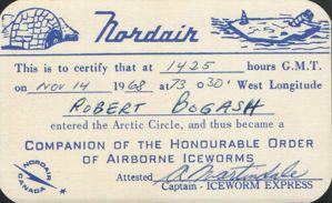 Red signed my IceWorm card when we crossed the Arctic circle flying from Frobisher Bay on Baffin Island to Resolute Bay (the most northern airline airport in the world.) It was aboard CF-NAL, the airplane pictured above.