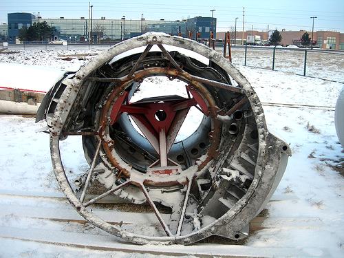 The lone engine looked a little better than I recall sitting in the mud in Toronto. The throttle valve moved freely - just like brand new! Even the PRT could be rotated. This engine will be cosmetically cleaned up at the Mohawk Valley Community College Aviation Mechanics School, adjacent to Empire Aero.