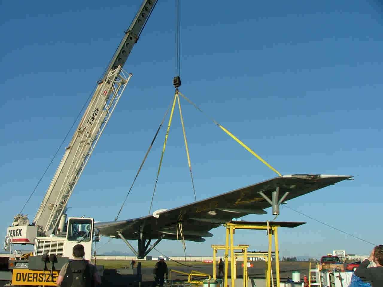 It took about 3 hours to lift, move, and secure the wing to the