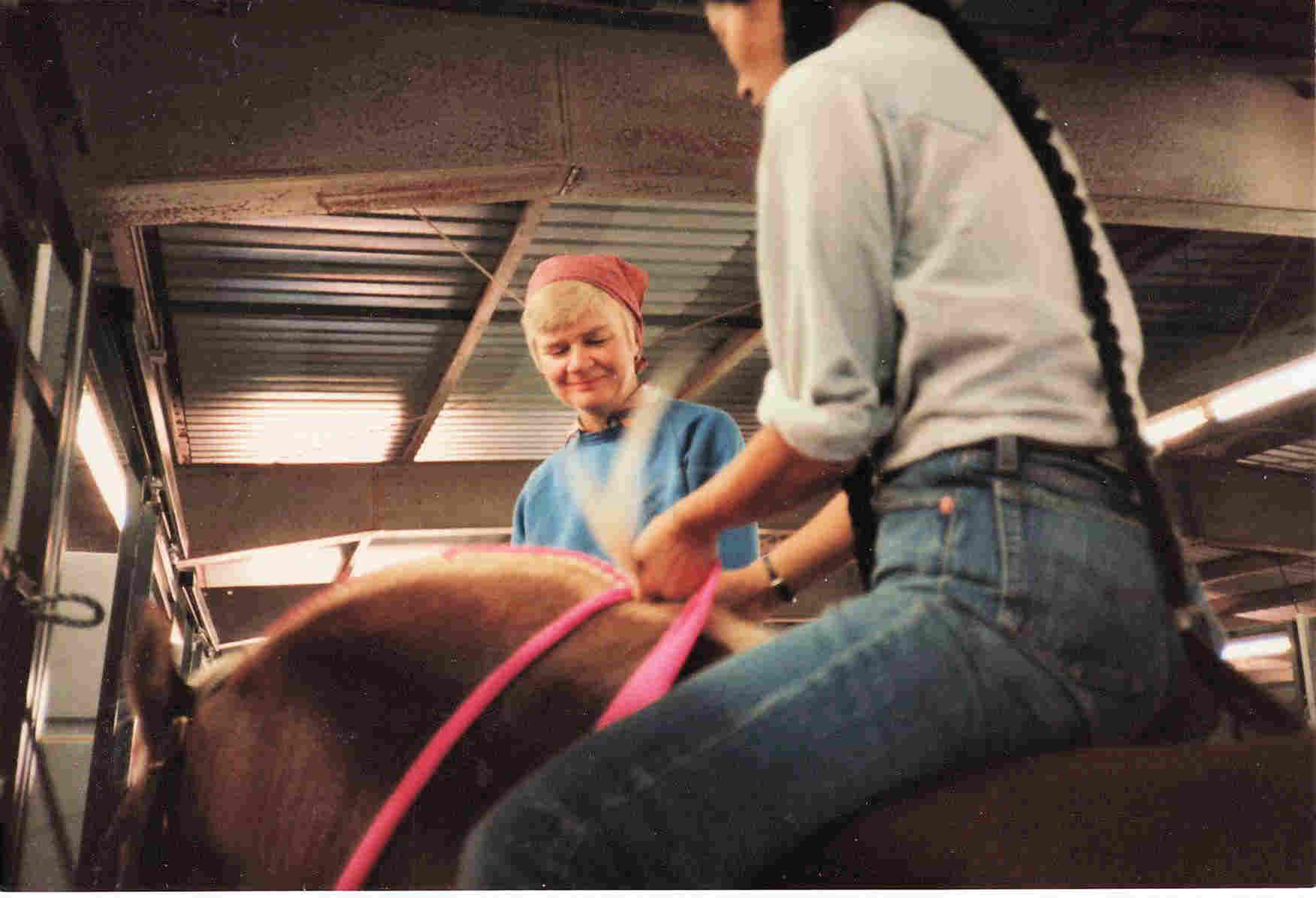 Getting his mane braided.......for the 1985 Draft Horse Show